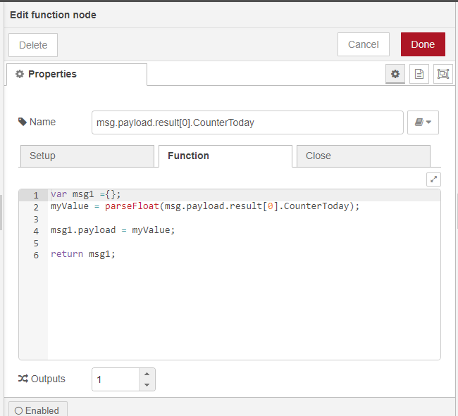 myValue = parseFloat(msg.payload.result[0].CounterToday);